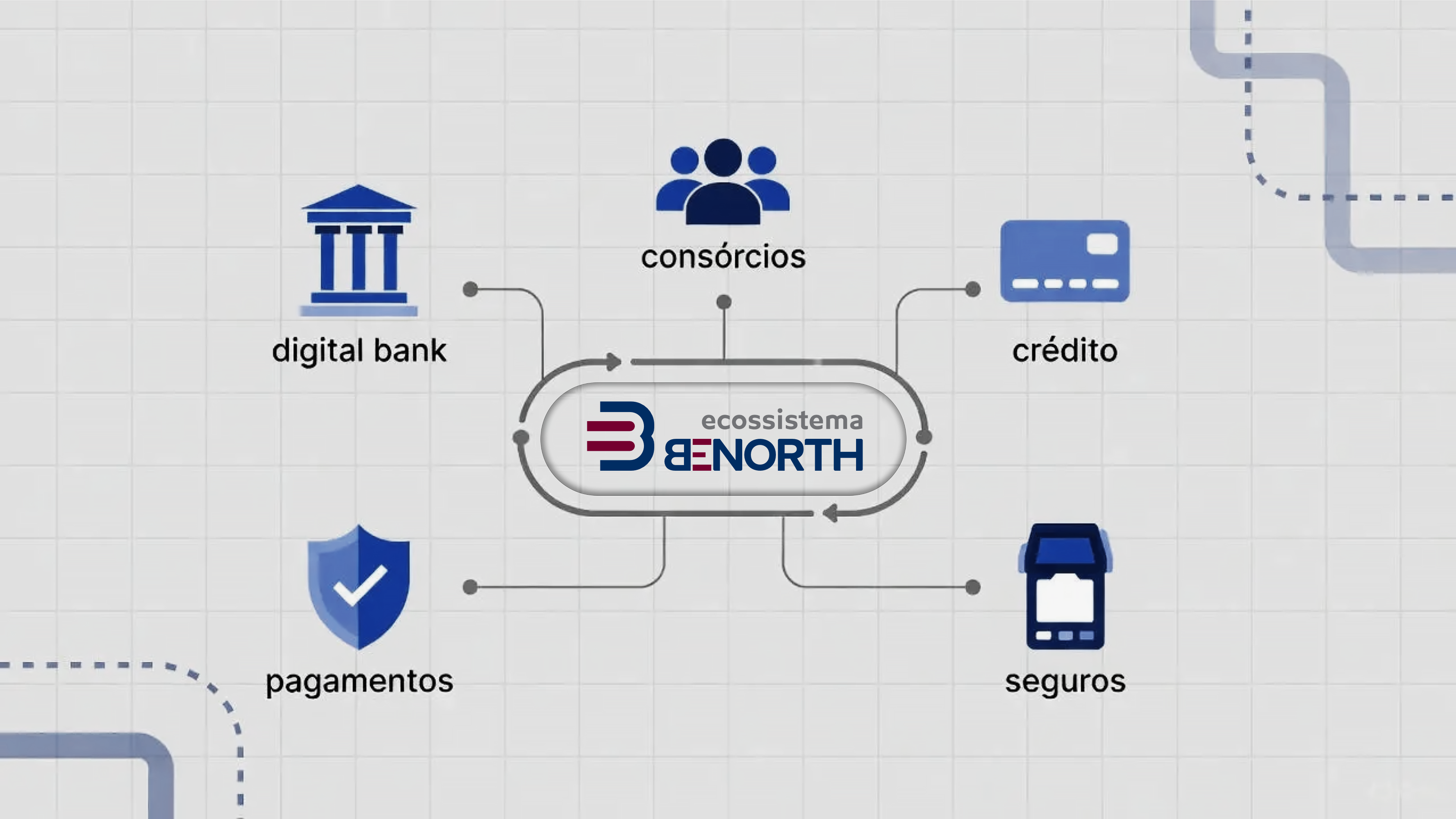 Mais do que uma fintech, somos um ecossistema financeiro completo, que conecta banco digital, consórcios, crédito, seguros e pagamentos em uma única estrutura.